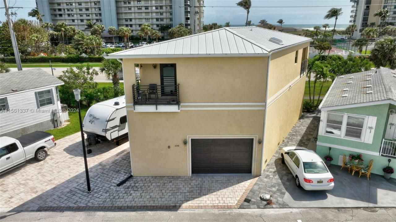 Edit mortgage details for a more accurate paymentWelcome to coastal paradise! This stylish 2-bedroom, 2-bathroom concrete block home, built in 2018, offers contemporary living in the sought-after Holiday Out community on Jensen Beach. Experience panoramic ocean views from the comfort of your 2nd floor living space and balcony. Community amenities: beach-side pool, pickle ball courts, shuffleboard courts, gated entry & low HOA fees of $277/month cover water, cable, sewer, trash pickup, lawn care & maintenance of common areas. Lot 491 can be purchased with 490.